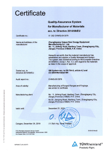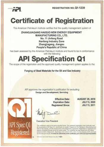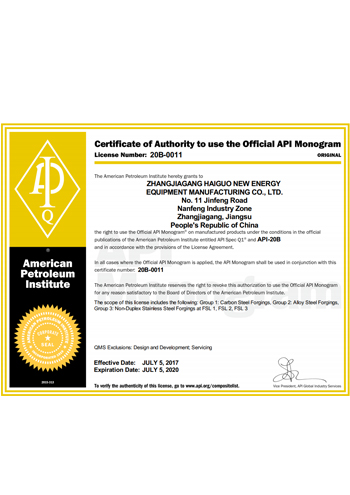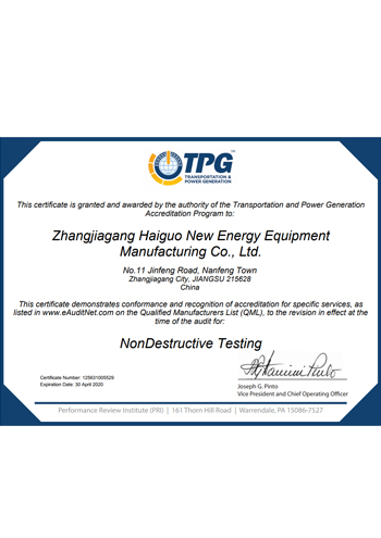 公司取得了美國ABS、法國BV、中國CCS、挪威DNVGL、韓國KR、英國LR、日本NK、意大利RINA等全球八大船級社的工廠認(rèn)證證書,建立了完善的產(chǎn)品質(zhì)量管理體系。先后獲得了美國API20B資質(zhì)證書、API6A資質(zhì)證書、APIQ1體系證書、TPG的NDT認(rèn)證證書、TPG 熱處理認(rèn)證證書、歐盟PED等認(rèn)證證書,同時也通過了一些國際客戶具有高度專業(yè)要求的資格認(rèn)證。